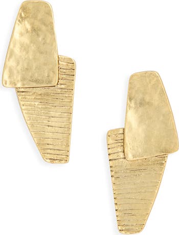 Bring contemporary shine to your lobes with these textured overlapped drops plated in warm goldtone.
