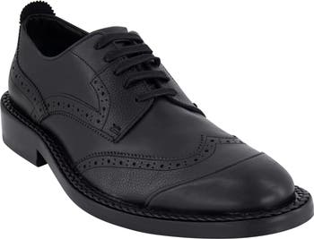 A cap toe and wingtip front this elevated leather derby cushioned with memory foam for daylong comfort.