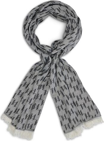 Fringed trim adds to the comfort of a softly brushed pashmina covered in the brand's signature motif.