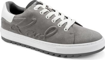 Upgrade your footwear game with this low-profile suede sneaker sneaker debossed with the designer's signature.