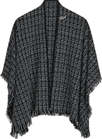Love to layer this marled ruana adorned with Karl Lagerfeld's signature and finished with fluttery fringe trim.