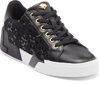 Low-top lace-ups get a dazzling upgrade with shimmering sequins, metallic hardware at the tongue and iconic branding at the heel.