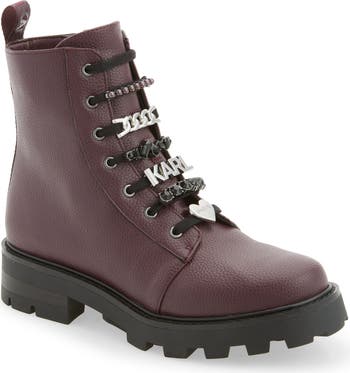Shimmering charms highlight the laces of this side-zip combat boot grounded by a toothy lug sole.