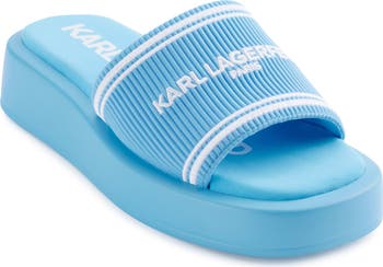 Contrasting logo embroidery pops on a classic slide sandal lifted by a just-right platform.