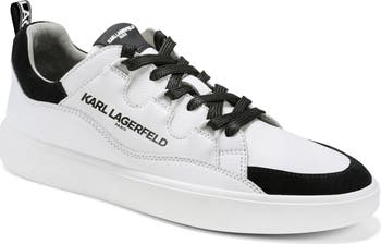 Upgrade your footwear game with this sporty, low-profile sneaker sneaker featuring contrasting panels and the designer's signature.
