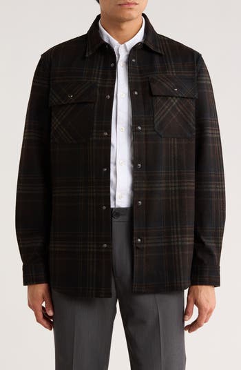 Shiny onyx-hued snaps lend Western appeal to this plaid shirt perfect worn alone or layered.