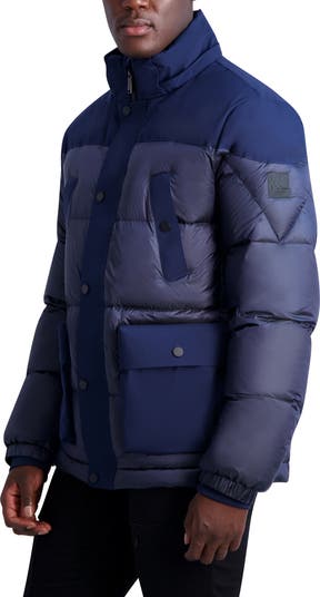 Quilted construction offers a distinctive silhouette in a stylish, modern coat with indelible appeal.