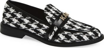 Logo hardware and shiny faux-leather trim enhance the polished style of this classic houndstooth-patterned loafer.