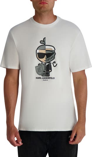 Show off your admiration for Karl Lagerfeld with this cool all-cotton T-shirt featuring a split character graphic of the icon himself.