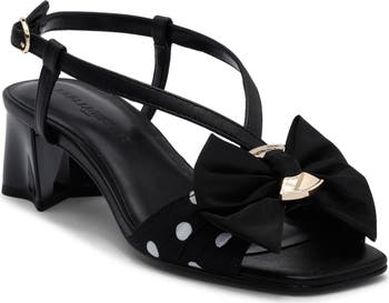Bring coquettish style to your party-ready look by donning this strappy sandal framed by a large bow.