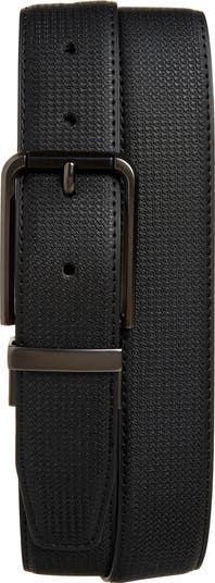 Textured leather enriches this everyday belt that reverses to a stitched finish for virtually endless pairing.