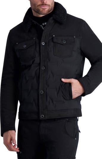 A faux-shearling collar furthers the coziness of this cold-weather jacket that's lined with synthetic filler to help retain body heat.