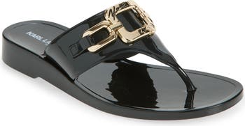 Gleaming hardware glams up this lightweight slide sandal boasting a thong-toe silhouette and a grippy waffle-textured sole.