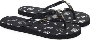 Signature charms detail the slim straps of a laid-back flip flop sandal that elevate all of your casual looks.