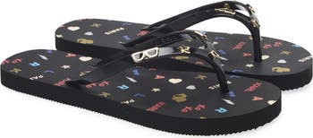 Signature charms detail the slim straps of a laid-back flip flop sandal that elevate all of your casual looks.
