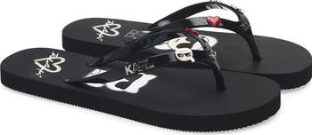 Signature charms detail the slim straps of a laid-back flip flop sandal that elevate all of your casual looks.
