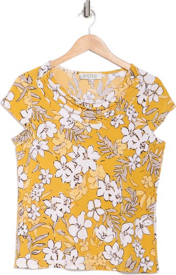 A drapey cowl neckline adds a sweet finishing touch to a woven top covered in a bold floral print sure to charm any audience.