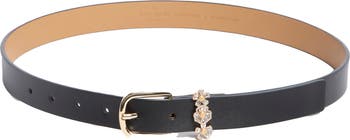 Complete your look with the subtle sparkle of a leather belt accented by a trio of crystal‑embellished flowers that grace the strap keeper.