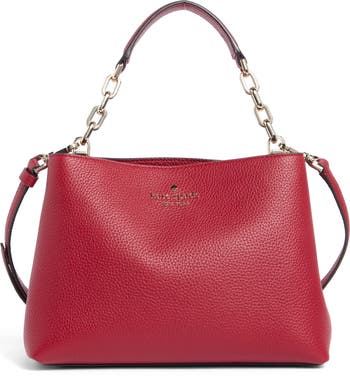 A top-handle bag shaped from grained leather features a detachable shoulder strap for versatile carrying.