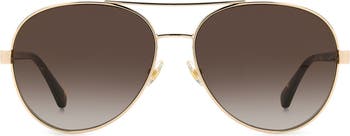 Spade-embellished temples put a sweet spin on these polished aviator sunnies fashioned with gradient lenses and adjustable nose pads.