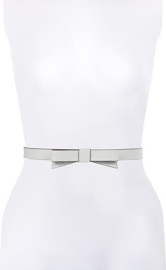 Cinch your waist with this rich leather belt centered with a delightful bow and fastened with push studs.
