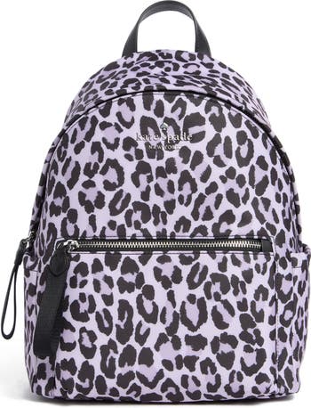 This everyday backpack is given the kate spade treatment in leopard spots, a soft violet hue and iconic branding.
