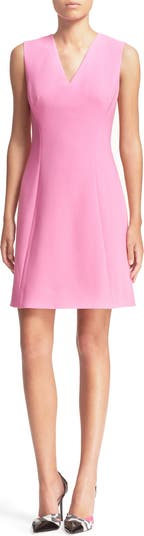 Strategic darts and swooping seams sculpt the ultrafemme silhouette of a sleeveless A-line dress crafted from perfectly pink crepe.