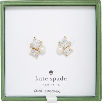Mixed-cut cubic zirconia and lustrous faux pearls illuminate these polished studs that bring just-right sparkle to your day.
