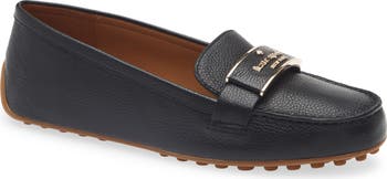 A polished logo plaque perfectly centers the penny keeper atop a sophisticated loafer shaped from softly grained leather.