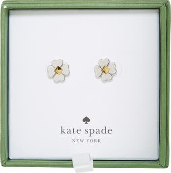 Show off whimsical shine with these two-tone floral earrings featuring dainty pyramidal studs framed by spade-shaped petals.