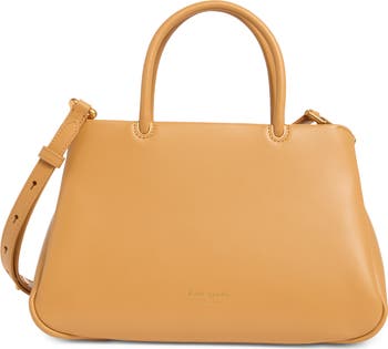 Polished hardware and rich leather distinguish a structured satchel furnished with a divided interior for easy on-the-go organization.