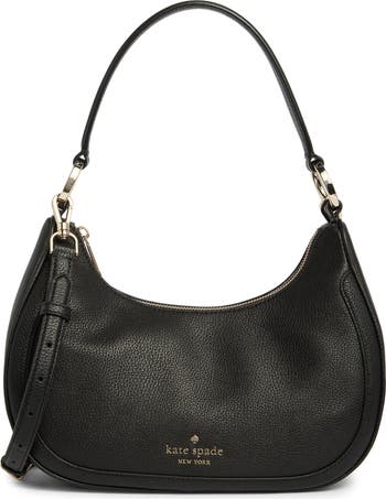 Rendered in richly textured leather, this crescent-shaped shoulder bag features gleaming logo hardware and an optional crossbody strap for hands-free wear.