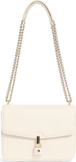 A logo lock charm adds a signature finish to a posh flap bag shaped bag made from a buttery-soft, pebble-grain leather and topped with a convertible chain strap for versatility.