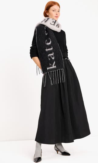 Give your cold-weather style a signature Kate Spade touch with this long wool-blend scarf featuring an intarsia logo and trimmed in twisted fringe.