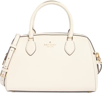 Signature logo hardware and rich leather lend luxe elements to a structured satchel furnished with a spacious interior for optimal storage.