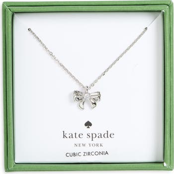 This mini bow pendant necklace is accented with sparkling cubic zirconia for a delicate, polished touch of shine.