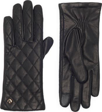 Polished spade hardware subtly brands a pair of gloves made from softly quilted leather to elevate your cold-weather looks.