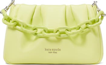 Ruched details lend visual appeal to this chic leather crossbody bag styled with a resin chain handle and a leather strap for versatile carry.