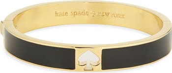 A brand-signature spade motif punctuates a wide hinged bracelet colored by black enamel and done with a high-shine finish.