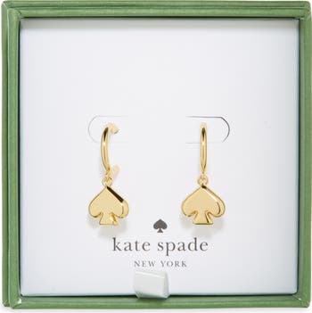 A signature spade dangles from these huggie hoop earrings that add eye-catching shine to your lobes.
