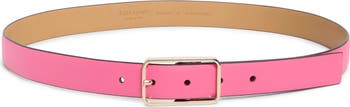 A fine texture highlights the pastel-hued leather of this belt that fastens with a high-shine buckle.
