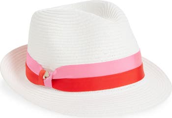 A bicolor grosgrain ribbon adorned with a golden spade defines this fedora hat that gives the perfect finishing touch to your vacay-ready look.