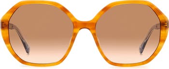 Large round frames are fitted with gradient lenses on these chic sunglasses with intricately branded temples for added allure.