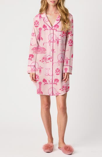 Drift off into dreamland in this soft cotton-modal blend sleep shirt featuring a Dallas-inspired toile print.