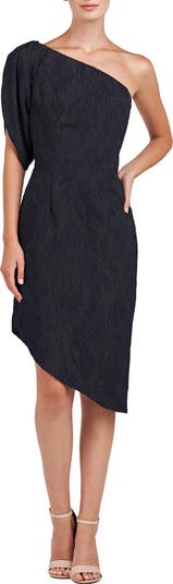 Feel all eyes turn to you in this asymmetric cocktail dress topped by a single shoulder and featuring a tonal jacquard pattern that brings depth to your look.