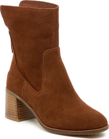 A chunky stacked heel brings earthy texture and just-right height to a versatile boot crafted with a supple leather upper.