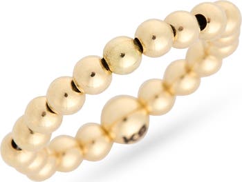 Catch the light with this dainty stretch ring traced by polished beads made from warm 14-karat gold fill.