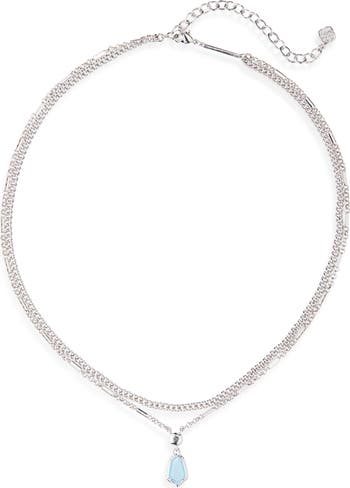 A luminous mother-of-pearl inset brings captivating color to the geometric pendant of this mixed-chain necklace that offers a layered look with one-and-done ease.