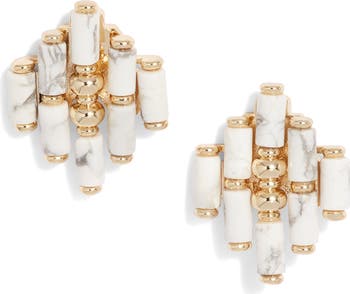 Add a Deco-inspired element to your look with these semiprecious stone earrings that are ready to make a statement.