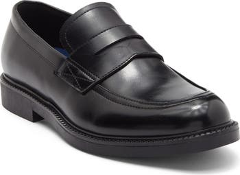 Exude polished style in this smooth faux-leather penny loafer constructed with comfortable cushioning and a flexible, nonslip rubber sole.